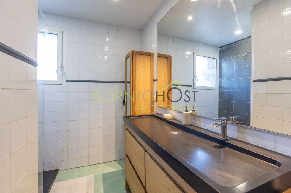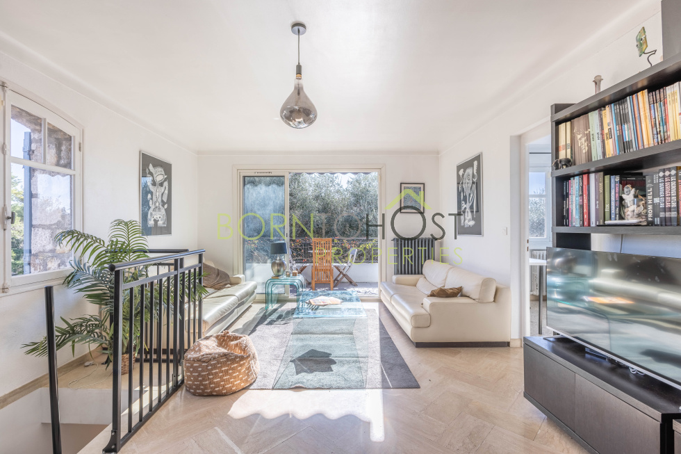 Sur 2 étages, elle peut être partagée en 2 appartements séparés avec entrées individuelles par le jardin (2 portails électriques indépendants).